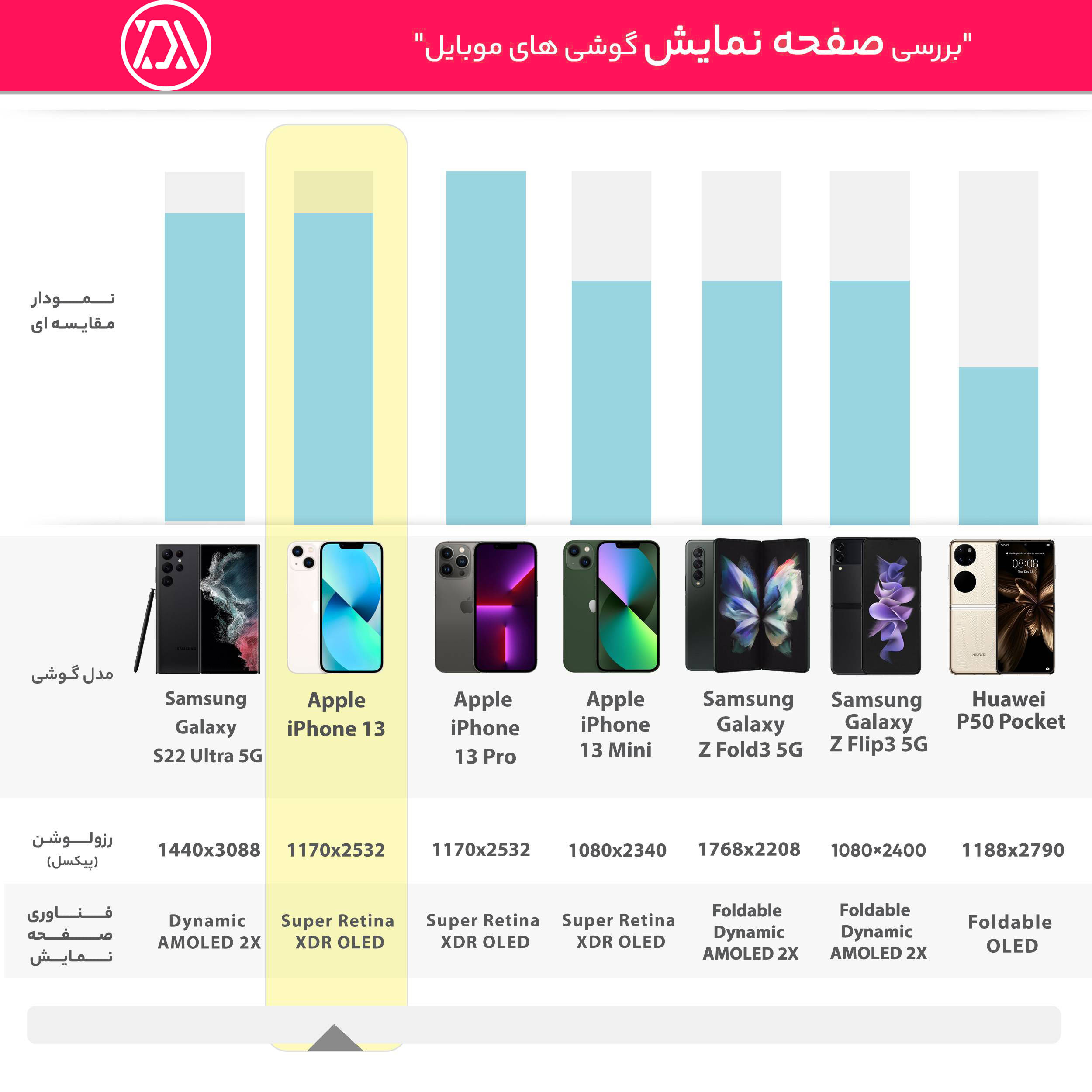 همانطور که میدانیم، صفحاتنمایش دو مدل آیفون 13 پرو و 13 پرو مکس توانایی ارائه اولین نرخ بروزرسانی 120 هرتز را دارند. این اولین بار در تاریخ گوشیهای هوشمند اپل است که چنین صفحهنمایشی را شاهد هستیم. اما آیفون 13 و آیفون 13 مینی همانند پرچمداران نسلهای قبلی، توانایی ارائه نرخ بروزرسانی 60 هرتز را دارند. از نظر میزان روشنایی هم این صفحهنمایش توانایی ارائه حداکثر روشنایی 1200 نیت (شمع در متر مربع) را دارد. بهره بردن از چنین میزان روشنایی سبب شده تا در شرایط نوری متنوع و حتی تابش مستقیم نور خورشید هم شاهد وضوح تصویر بسیار بالا و باکیفیتی از صفحهنمایش آیفون 13 باشیم.
